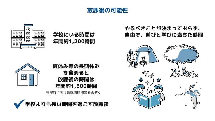放課後の時間は短い時間だと思われがちですが、実は長期休暇も合わせると、学校で過ごす時間よりも長い時間を過ごします。