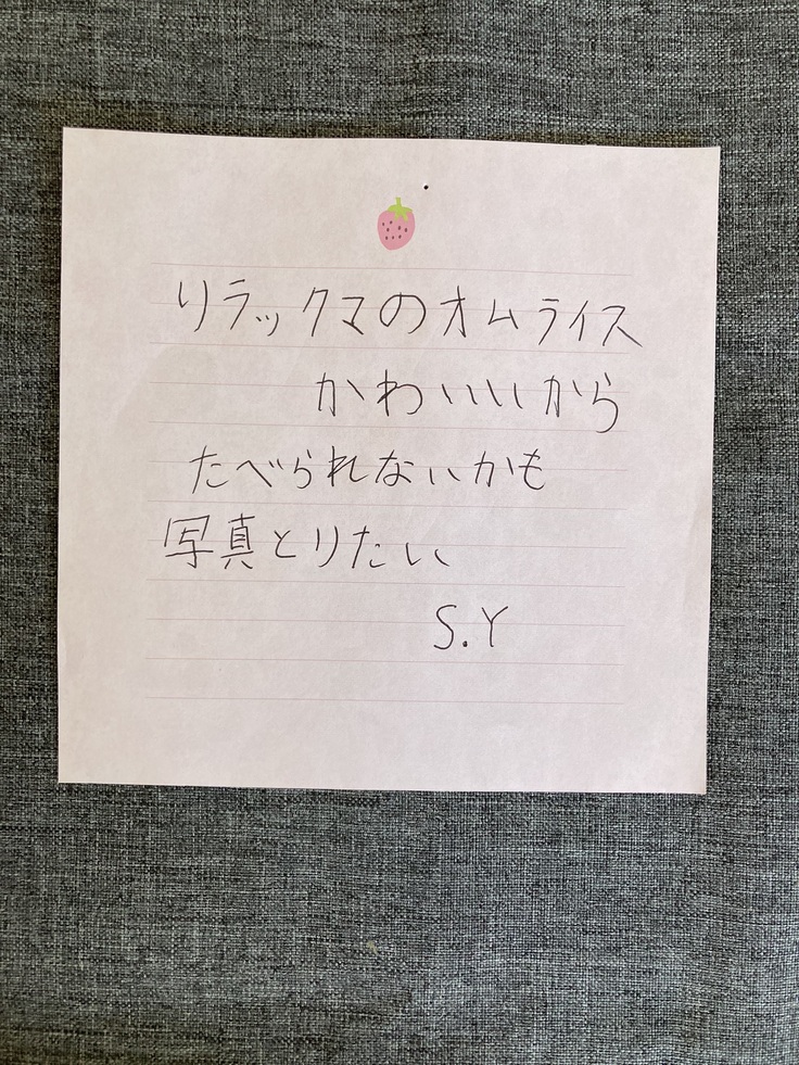 ・子供がリラックマのオムライスがかわいくて、食べるのがもったいなかったと話していました。形がかわいいと、より気持ちが明るく笑顔で食事ができると感じました。 ありがとうございました。