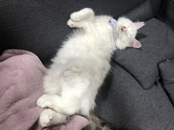 保護してくださった方が治療してくださり、私がこはくを譲り受けた7月には、猫風邪も完全に治りとても元気な状態でした。