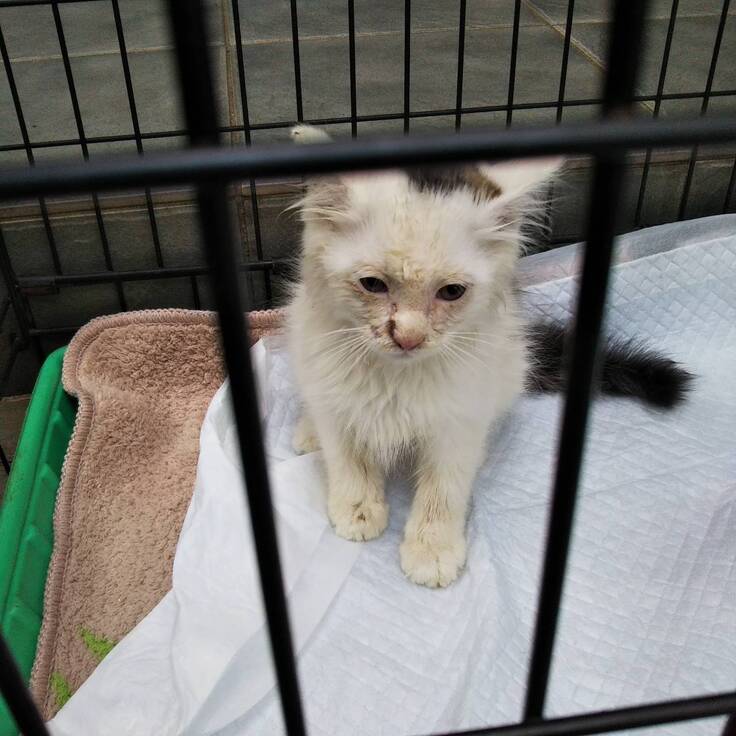 こはくは、2021年4月1日に生まれた(推定)保護猫出身の男の子です。昨年6月、保護された当初のこはくは猫風邪を患っており、かなりやせ細っていました。