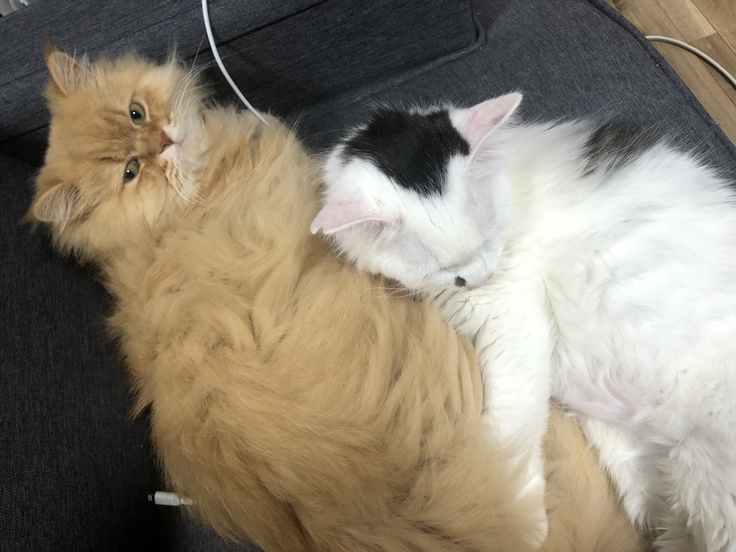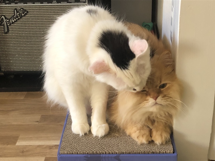 (先住猫ちゃんに甘えたり、グルーミングしてみたりと大好きな様子です。↓)