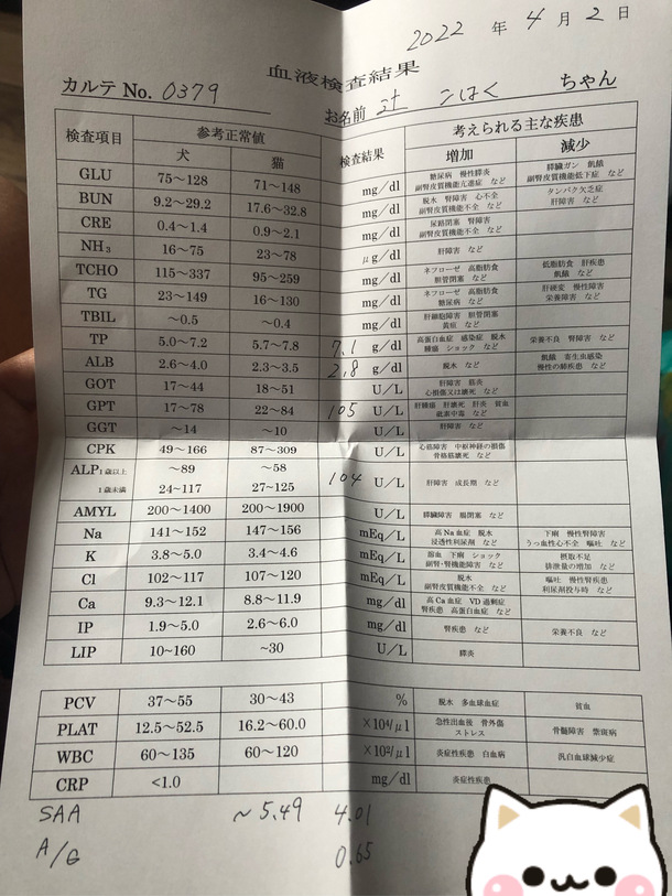 4/1血液検査結果