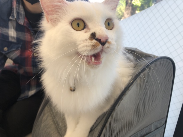 他にワンちゃんやネコちゃんが待合室にいるときは、キャリーの中でおとなしくしているのですが、いないときは「出せ~!!」とニャンニャン鳴き、私たちになでなでしてくれと甘えてきます。