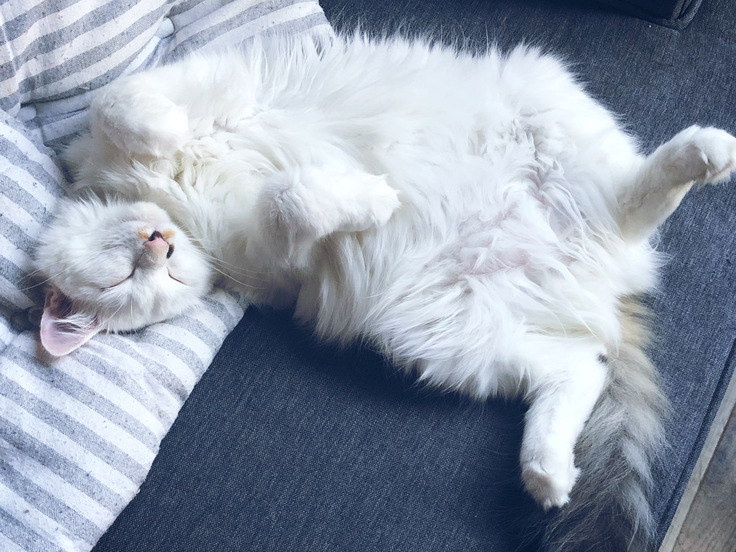 こはくを家に迎えてから、初日こそソファーの下に潜り込んでなかなか出てこなかったのですが、すぐに家の環境にも慣れ、私や旦那に甘えたり先住猫ちゃんにも自らグイグイ絡みにいっていました。未だにくつろぐときは私のひざの上や旦那の腕枕がお気に入りです。こはくはとても食いしん坊で、いつも自分のご飯をあっという間にぺろっと食べてしまうと、先住猫ちゃんのご飯を奪おうとしては先住猫ちゃんに猫パンチをお見舞いされたりしていました。そんな様子を見ていて毎日癒やされていました。