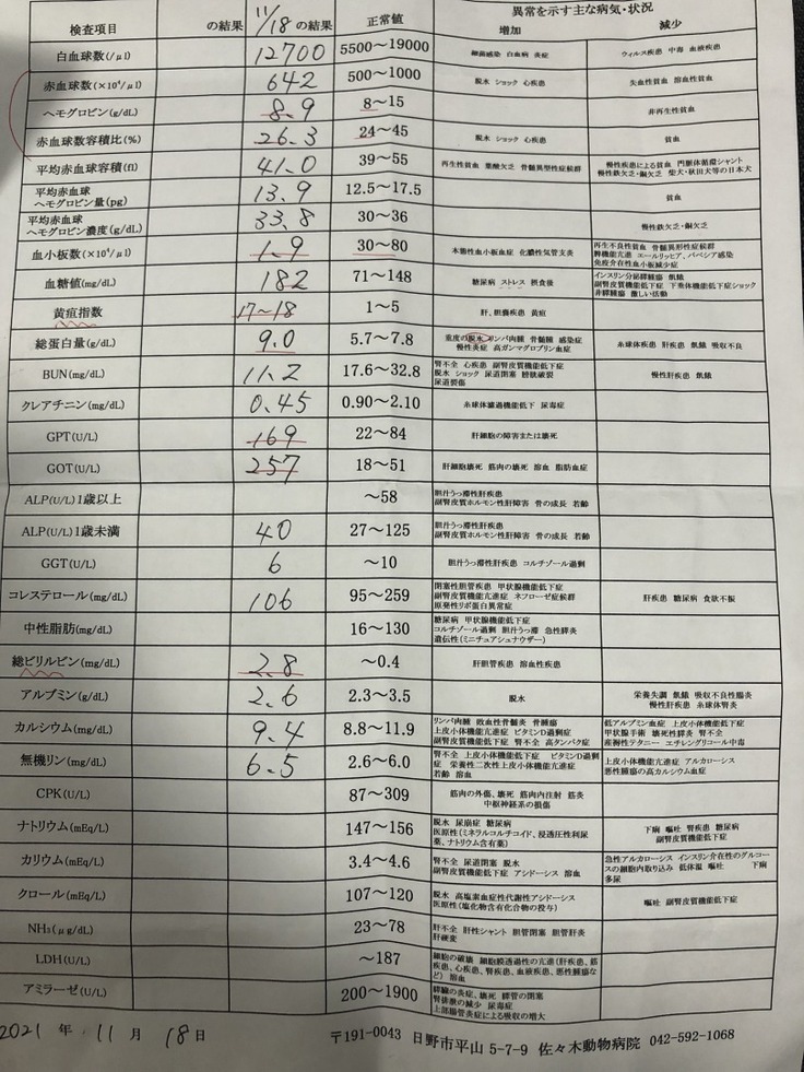 11月19日。朝一番に病院にこはくを連れていき検査の結果を聞くと、やはり陽性だろうというお話でした。FIPは診断を下すのが難しいようで、保有している猫コロナウイルスの数と、出ている症状から総合的に判断されるということでした。