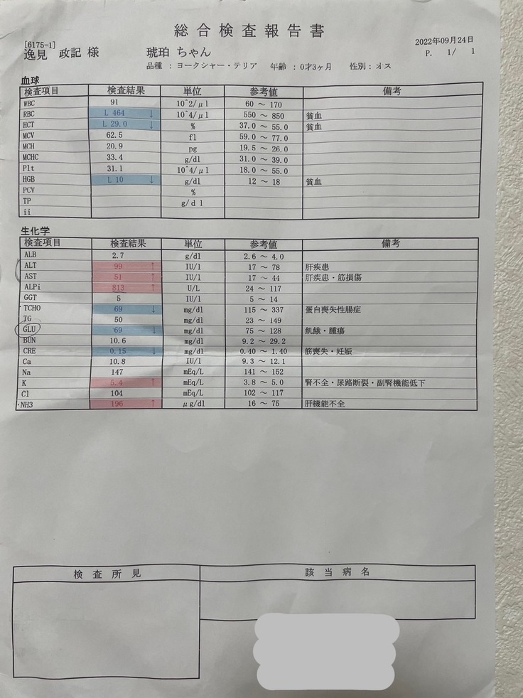 9月14日先天性遺伝子疾患「門脈体循環シャント」の疑いであると診断されました。