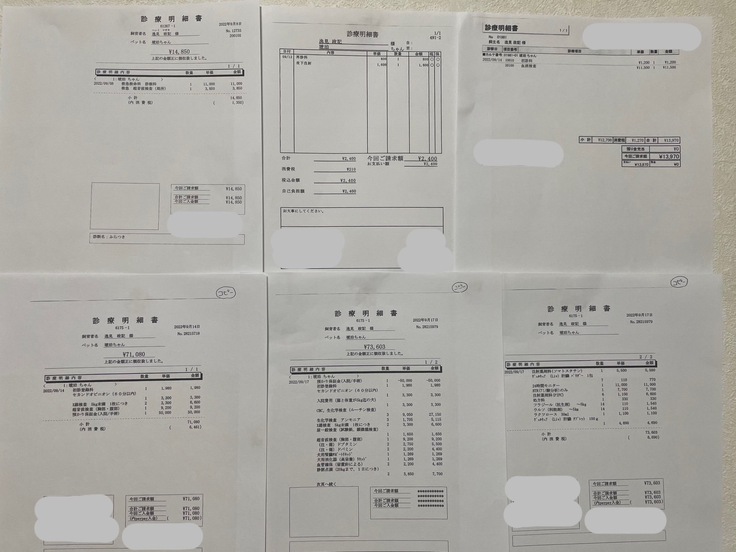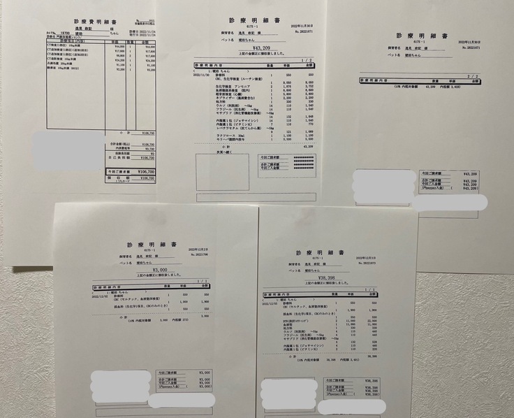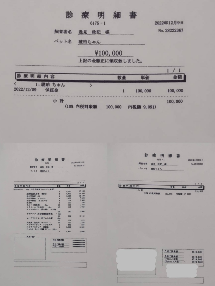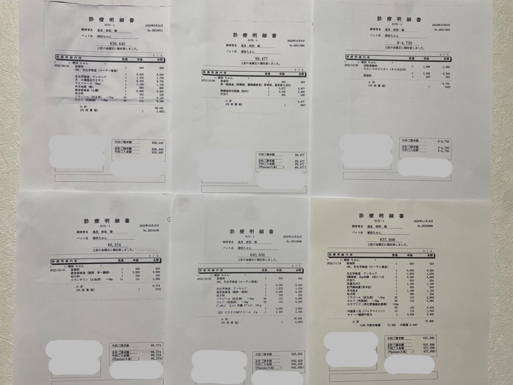 ページ上に記載している診断書および診断明細書、領収書などの資料は全て動物病院から許諾を得ております。