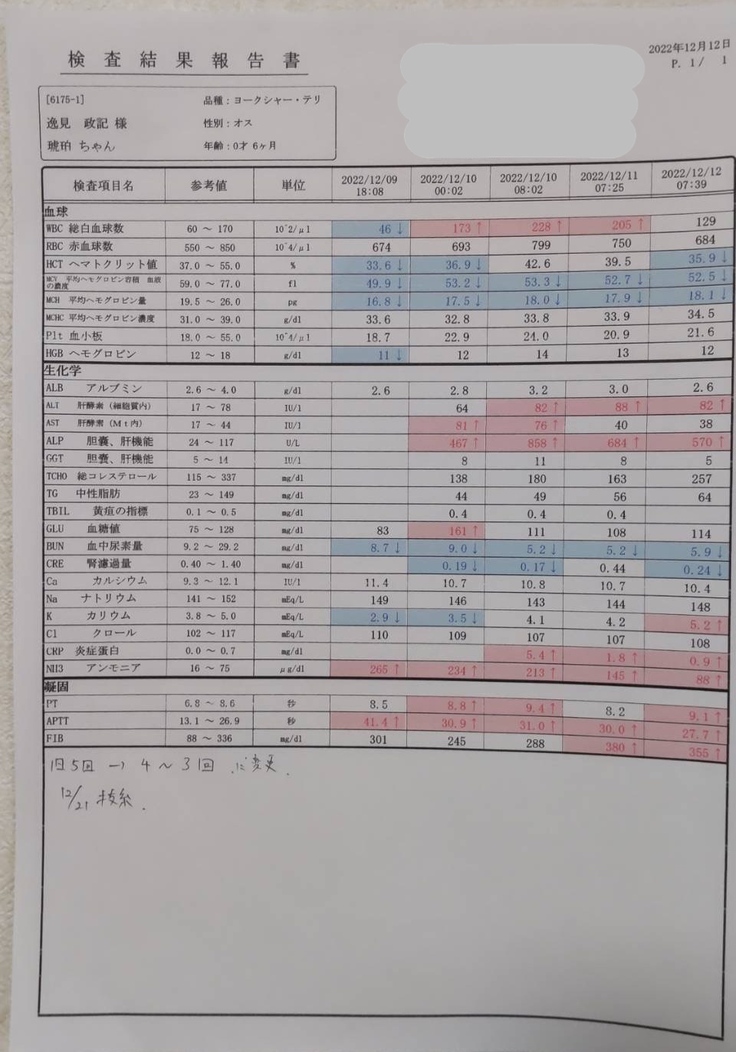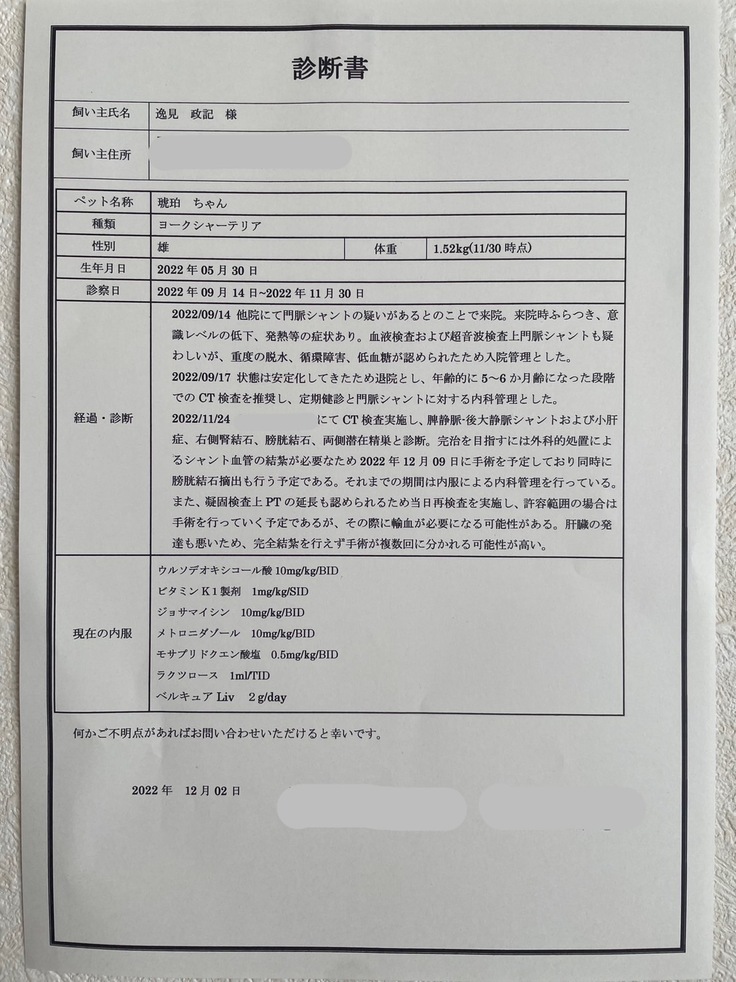 SNSにて琥珀の成長記録、脾静脈・後大静脈シャント治療の活動記録を載せているのですが