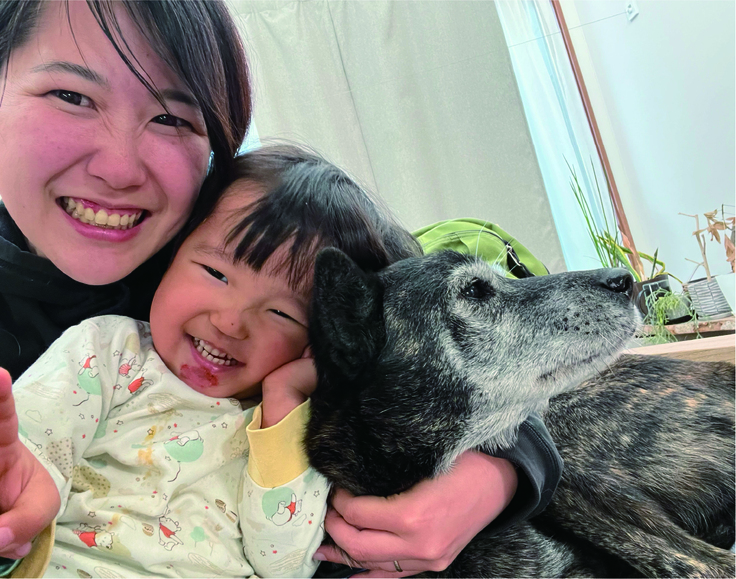 父が山の中で飼っていた「クロ」の保護を決意した当時、私自身が第一子を妊娠しており、迎える準備ができるまで、こはくのおうちでしばらく預かっていただきました。冬は氷点下になる山の中でずっと繋がれ外飼いされていたクロは、犬社会を学び、酷かった吠え癖もなくなり、人と良い関係を作れるさらに良い仔に。こはくのおうちは信頼できるとその時確信しました。