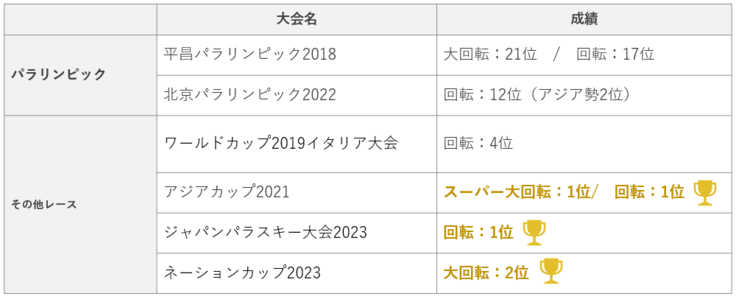 ※8 パラリンピックへの出場歴の掲載は他の大会とバランスをとる範囲で日本パラリンピック委員会から許可を得ております。
