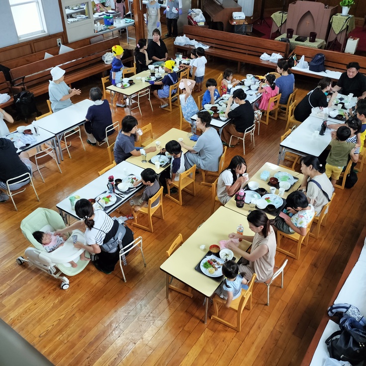 私たちは神奈川県平塚市にあるキリスト教の教会です。1950年に設立され、長年にわたって地域の福祉、貧困問題に関わってきました。4年前からは月2回、こども食堂を始めました。毎回150食以上を提供する平塚市内・神奈川県内でも大規模なこども食堂です。こども食堂というと、こどもの貧困対策と思われがちですが、地域の孤立予防の機能、多世代交流など様々な役割を果たしています。こどもから高齢者まで誰でも利用できる食堂として開放し、一緒に食べることで、それぞれに生きる勇気や活力が湧いてくるような場所を目指しています。