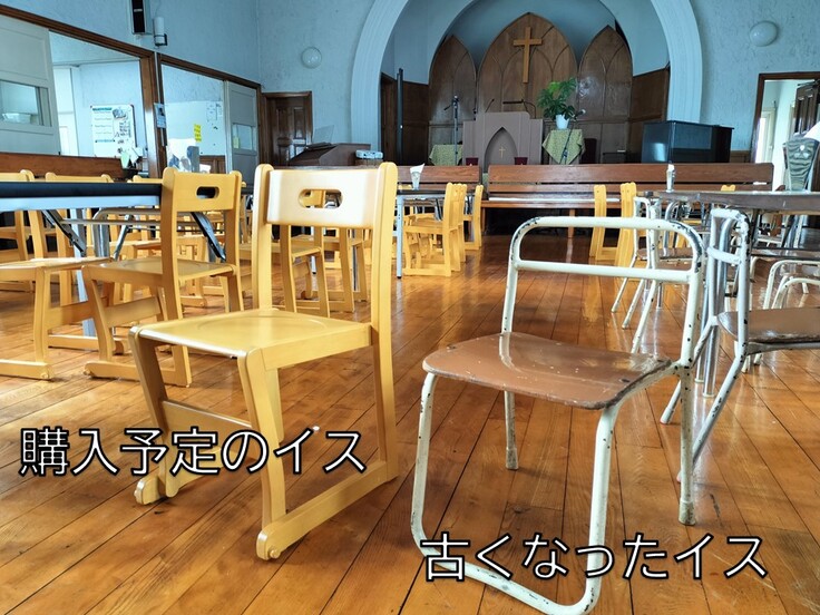 また食堂のイスの交換にもご支援をいただきたいと思っています。現在約50脚のこども用イスを使用していますが、一部のイスは数十年以上使用しれたもので、ペンキの剥がれや、ささくれ、へこみなどがあり、座るのをためらうこどももいます。大人が座る上での耐久性も心配になってきました。50脚のうち、古い30脚の更新を考えております。1脚あたり5000円ほど追加で15万円が必要です。