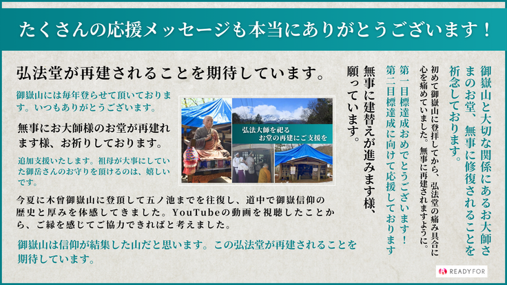 残りわずかな期間ではございますが、御嶽山と登山者の安全を願うこのお堂の再建に、ぜひお力添えいただけますと幸いです。