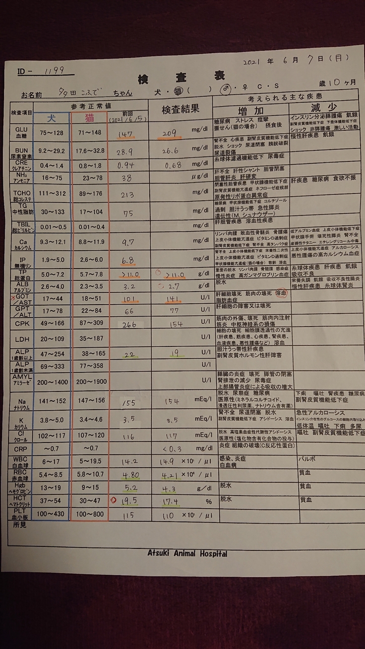 貧血の数値はどんどん悪くなり、でも下がりきったとこなのでこれから上がっていくでしょう。