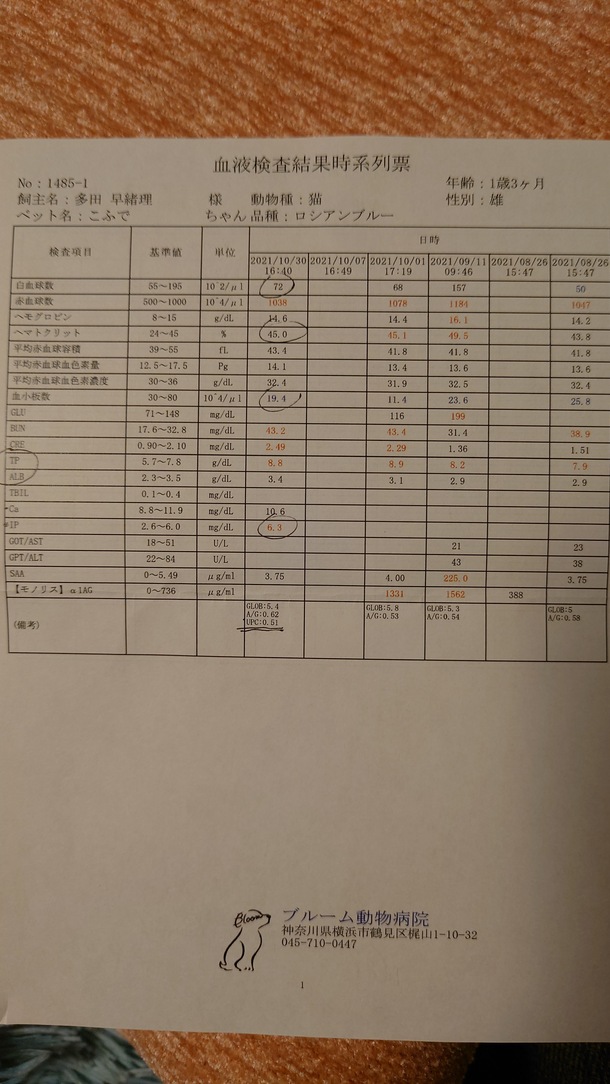 ただ腎臓関係の数値が変わらず良くなかったです。