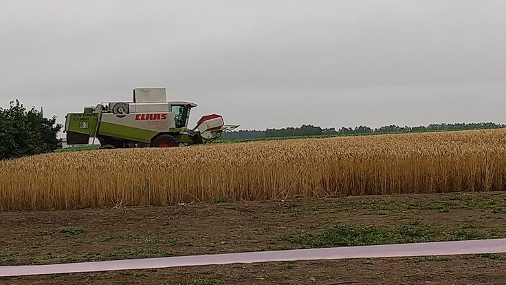 小麦の水分量を確認しながら、農家さんたちが朝から夜まで小麦刈りをされるのです。