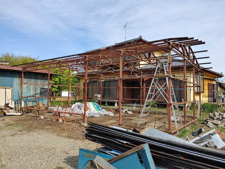 寄付された物件の敷地内には老朽化した旧住居や大量の使われなくなった資材などが放置され、荒れた状態でした。これらをきれいに撤去したのちグループホームとなる物件のリフォームを行い開所を目指して動いています!