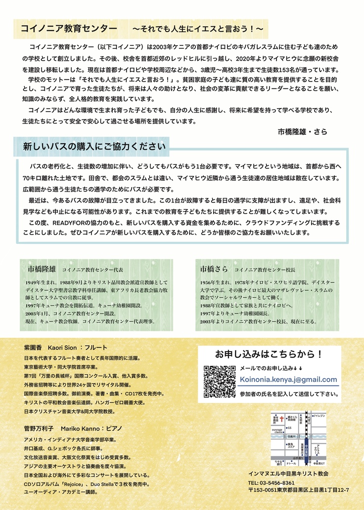 また、コンサートと共に市橋さらさんとのお話し会やコイノニアグッズの販売会もございます。