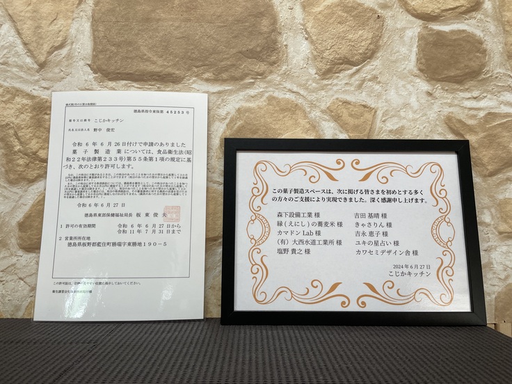 6月27日付けで許可を受けていた菓子製造業の許可証が届きました!