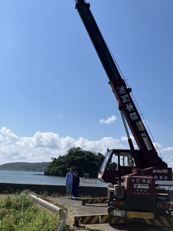 小島神社とクレーン。 〈工事進捗レポート ②〉