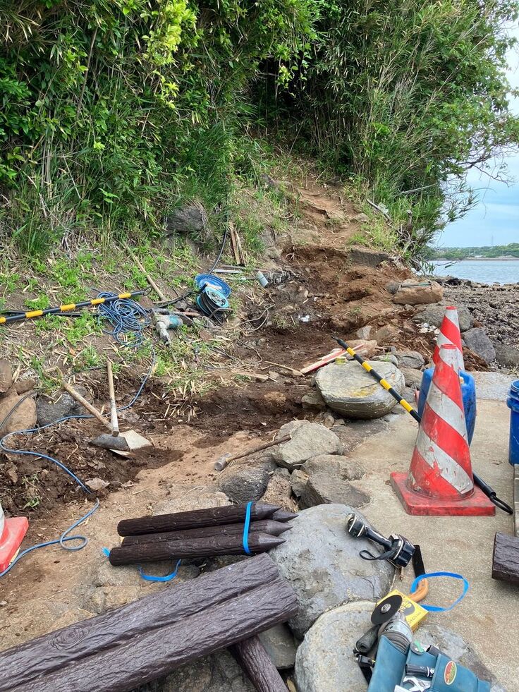 梅雨に入って崩れやすく、滑りやすい参道階段で事故が起きては今回の活動が無駄になる!