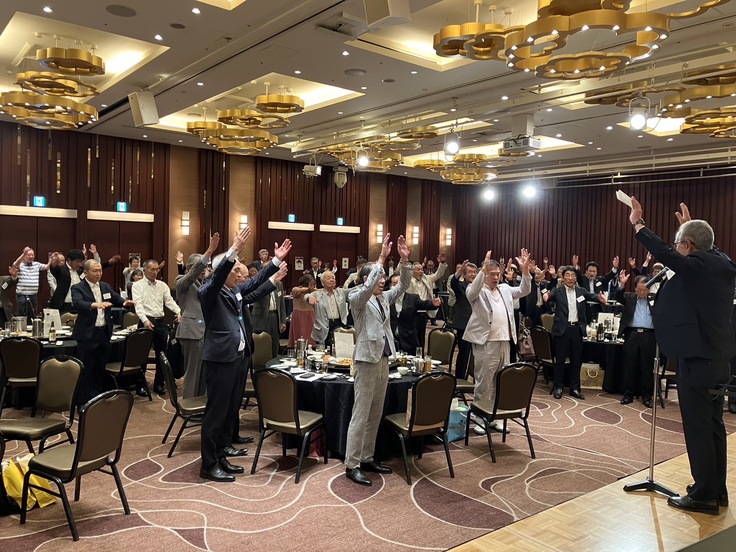 年度総会のパーティー会場などで「小島神社プロジェクト」をPRさせていただいています。