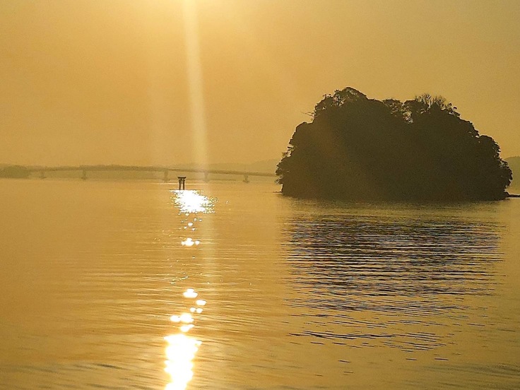 には島に変わる。日によって限られた時間にしか参詣できない魅力的な神社である。