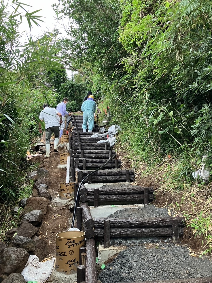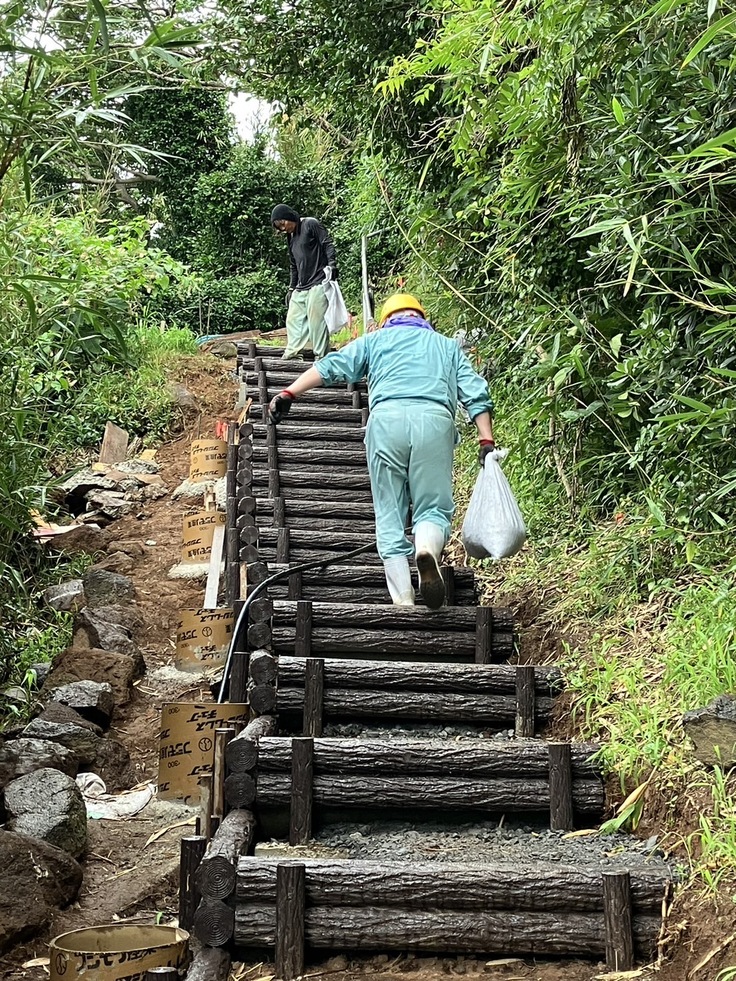 参道階段の基礎部分に敷き詰める砕石と砂利をつめた袋は約15キロ!