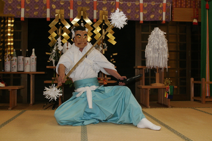 神職のみで舞い奏じる希少な ”神事芸能”。