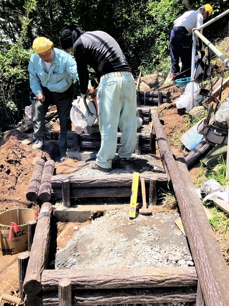 今日も着々と静かに続く階段の基礎工事は八合目程度