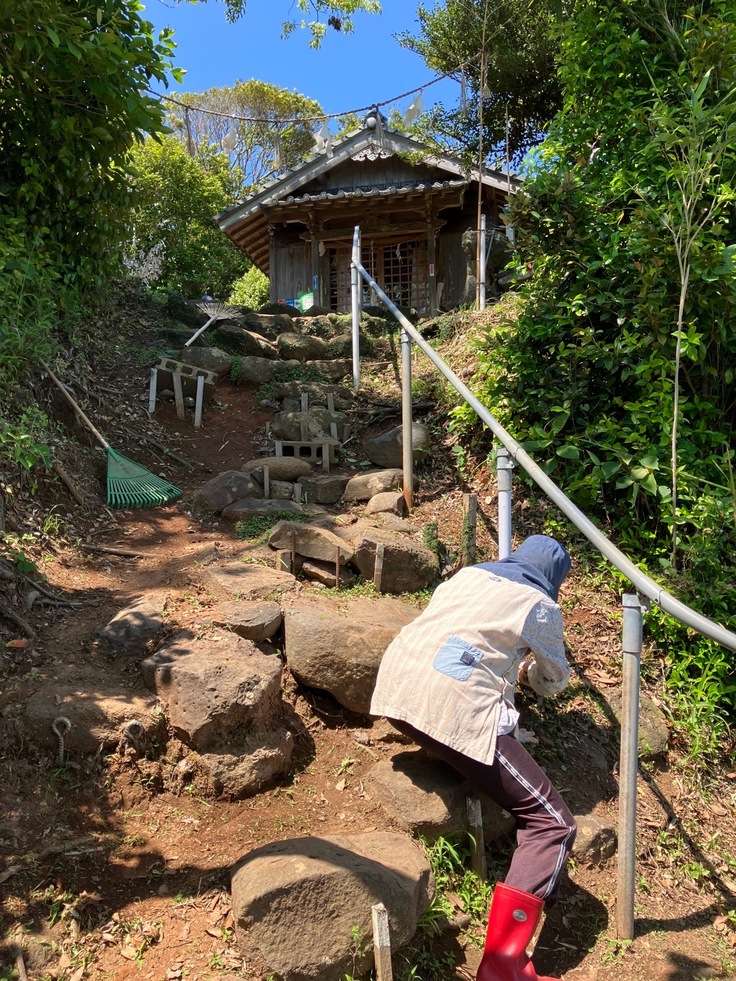 社殿に向かい、急勾配に加えて大きな岩石が崩れそうで