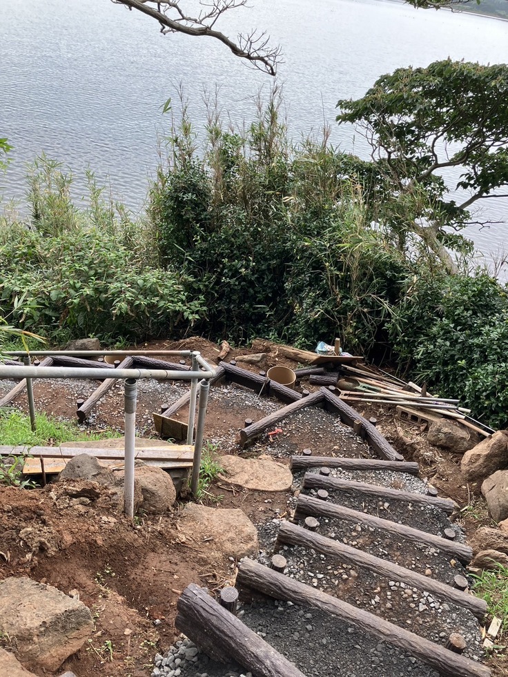 工事最難関の胸突き八丁を突破し、基礎工事はお社正面