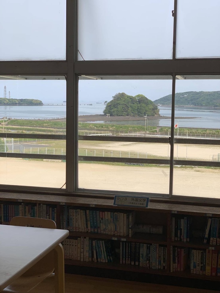 あんまり利用したことなかった図書室(3階)からの小島さん。