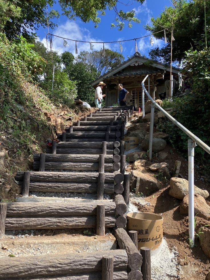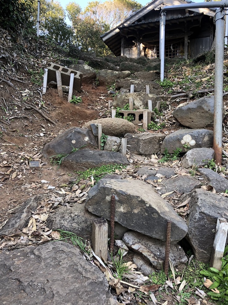 ◼️氏子会の皆さんが手積みで組み上げた石段は風水と参拝者増加でその安全性が損なわれてしまいました。