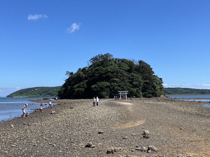 今日も大勢の観光参拝者(札幌、東京、福岡、佐世保、、、)が干潮の参道を楽しんで