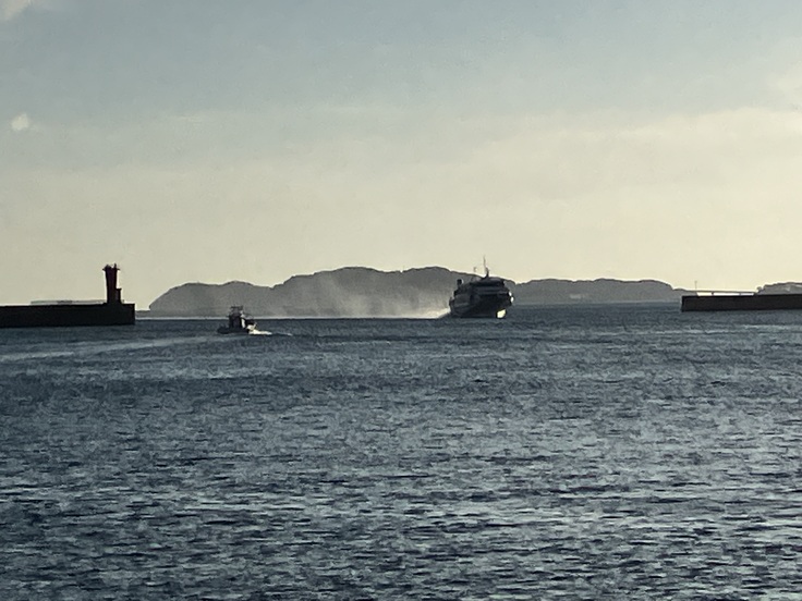 フェリーと高速船(ジェットフォイル)が相次いで