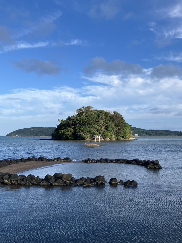 お盆です。島の人口増加! 小島神社の工事もお盆休みです。