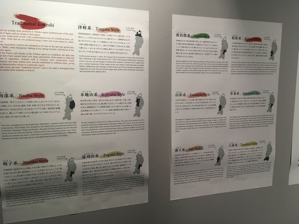 会場には、伝統こけしの12系統を紹介するパネルを設置しています。