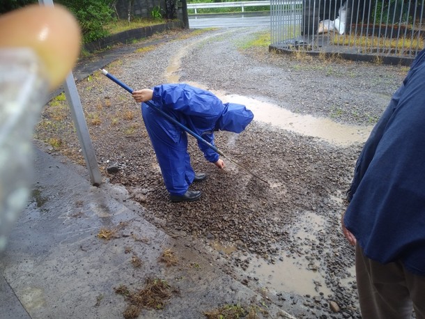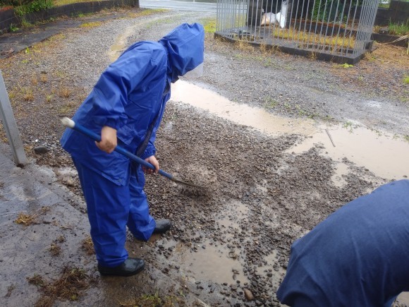 この青いカッパの人は作業してるおじさんのように見えますが、私です(笑)
