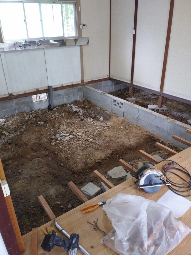 というか、床を剥いでみてびっくりしたのは、部屋と部屋の間になくちゃいけない基礎が、へんな所にあったことです。