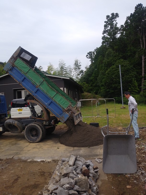 まずは、コンクリートに使う砂を持ってきてくれました。