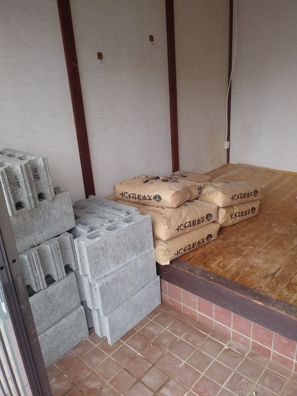 その後、厨房の床にコンクリートを流すのですが、そのための材料からの準備です。