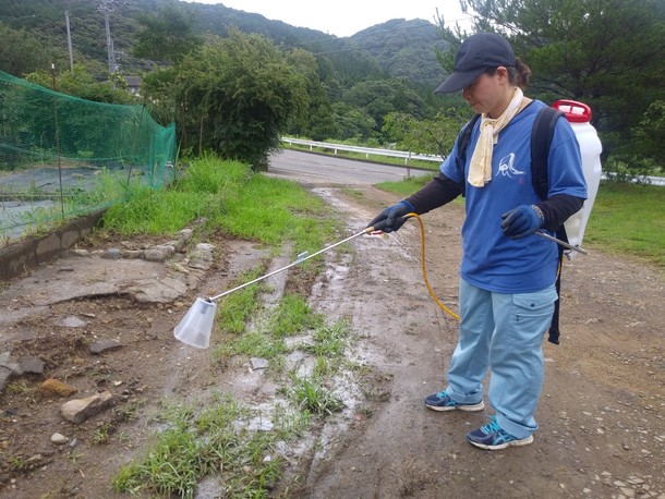 今日の所は改装もやる事がなくなったので、午後からはkokoro食堂でも使わせてもらうお米を育てている尾﨑家の田んぼの肥料まきと、あぜの草刈りをお母さんと一緒にしました。あと、ずっと雨でできなかった庭の一部の除草剤まきをしました。もう、この雨どうにかして欲しいです!
