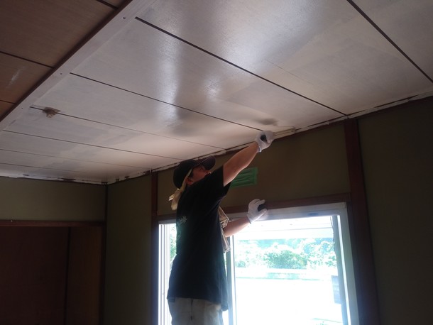 まあ、そんなこんなで日曜日の午前中で、天井を全部塗り終わりました!