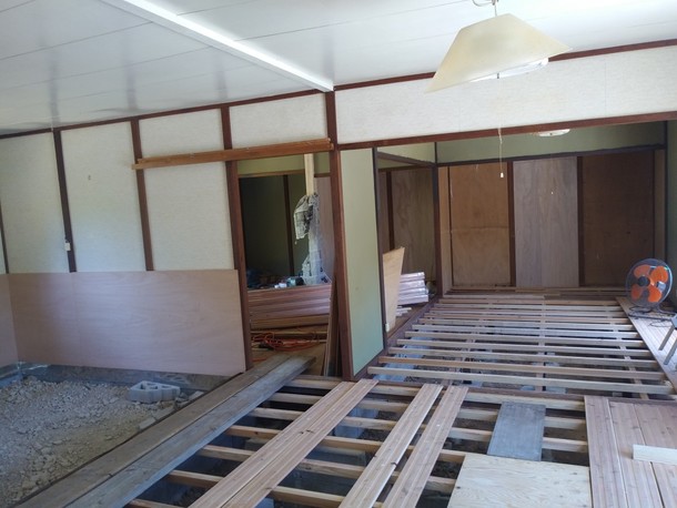 部屋の奥に床材が積んであるのがおわかりでしょうか?