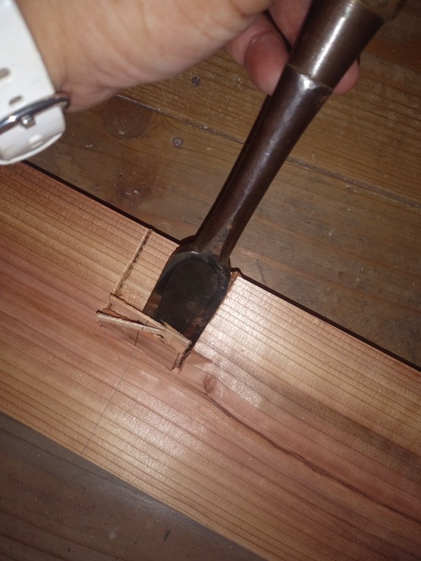 押し入れと言えども、ネダを入れるところに合わせ、ノミを使ってちょうど面が合うように削っていきます。集中して瞬きも忘れるのでコンタクト乾きます^^;そんなこんなでネダが組みあがりました。