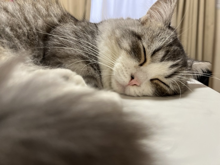 今日も普通にお薬飲んでくれました。最近はお薬を飲むのが少し慣れたような感じがします。捕まえてもあまり嫌がる素振りはないので、とても助かってます。これからは暑さにも気をつけていかないといけないので、まだまだ気は抜けませんね☺️
