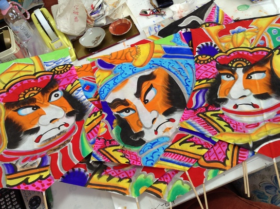 (凧作りの作業部屋。染料で色を挿してゆくところ。)