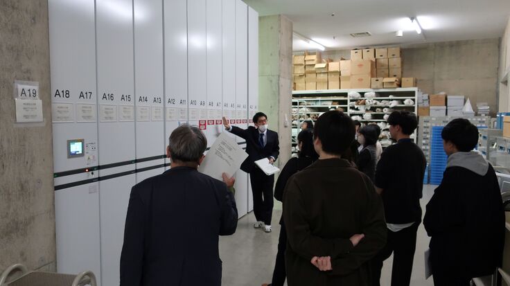 遅ればせながらのご報告です。受講者は51名(特別聴講9名を含む)でした。受講者の内訳は資料保存機関・行政機関22名、民間企業・大学5名、大学院生12名、その他12名でした。特撮アーカイブズや市民運動関係者もおり、日本でのアーカイブズの広がりを感じさせる最近の傾向は今年も続いています。下の写真は、長野県歴史館の書庫見学の様子です。