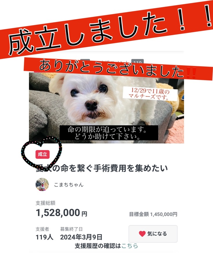 愛犬の心臓の手術が決まりました!少しだけ手助けしてもらえませんか?